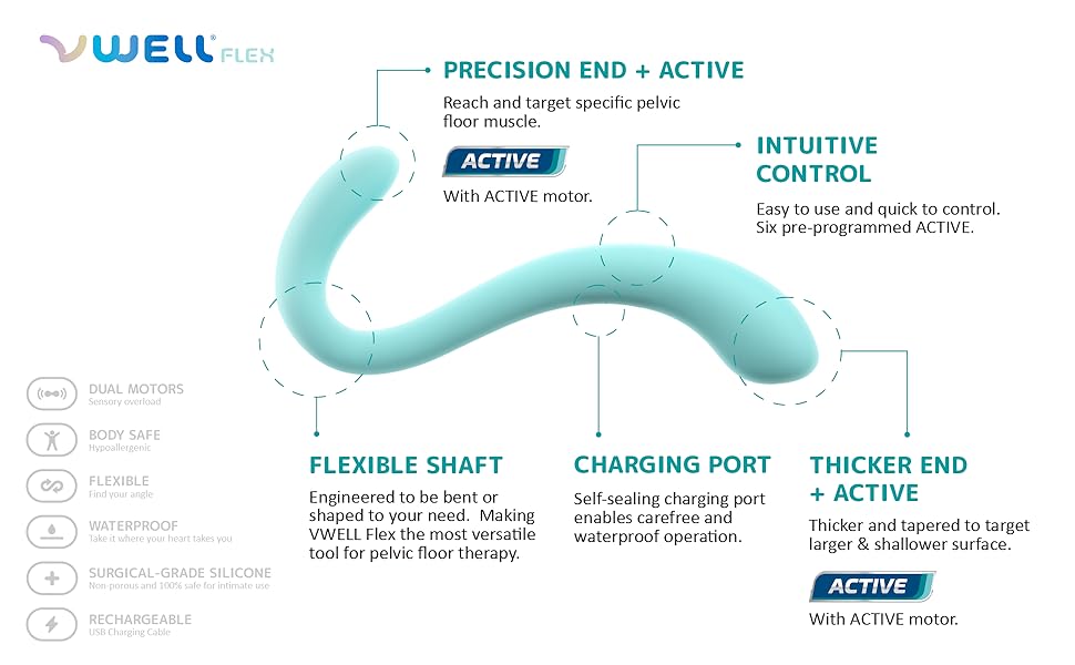 Experimenta la máxima flexibilidad y versatilidad con el masajeador interno pélvico VWell Flex.